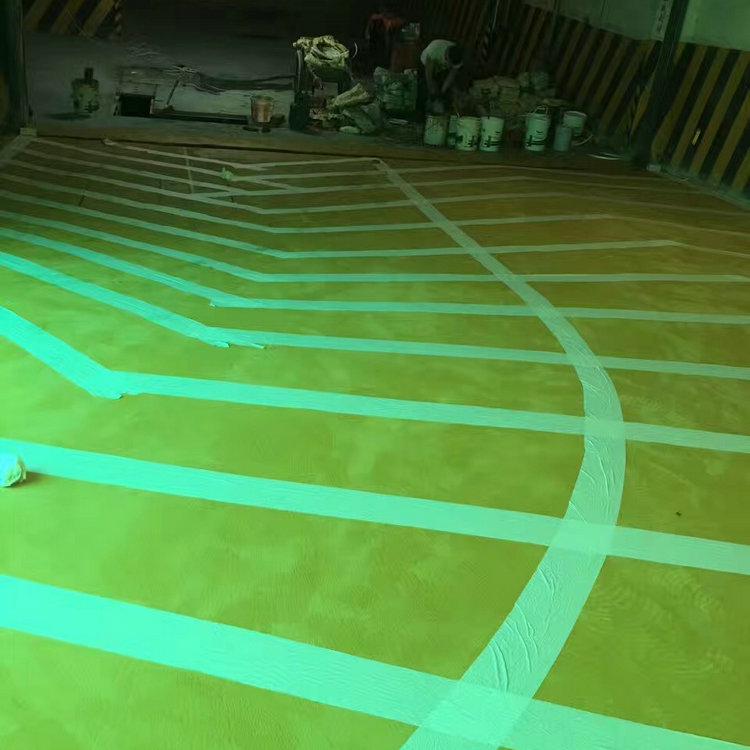 1. 鋪設底漆:將環氧樹脂滲透底漆A組份和B組份按一定比例(1:1)調配均勻滾涂做底層,封閉原素地表面之毛細孔,增強素地與漆層的接著力。 2. 刮涂環氧砂漿中間層:將環氧樹脂中涂地坪漆A組份和B組份按一定比例(4:1)調合攪勻,加入40-80目之石英砂調成環氧石英砂漿,刮涂環氧砂漿中間層。 3. 做止滑層:將A組份和B組份按一定比例(4:1)調合攪勻,用專用滾筒均勻滾涂一遍,均勻撒布止滑石英砂,待干后掃去多余之石英砂。 4. 彩色面漆滾涂:將A組份和B組份按一定比例(4:1)調合攪勻,用滾筒或噴涂均勻滾涂一遍。 地面鋪設,減少了制作工序與時間,并能夠提高產品質量,減少施工時間。