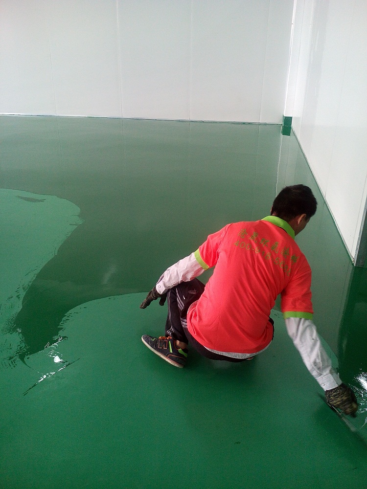 環氧地坪漆面漆施工中